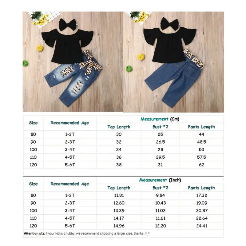 Buy New Fashion Toddler Kids Baby Girl Off shoulder Ruffle Shirt T shirt Denim Jeans Leopard Pants Head Right Here and Right Now Just for USD US $5.78, Price will be rise up at any time without notification and I cant guaranted that the stock is still available tommorow or next hour. So Please Save It Now!